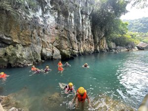 - Safety briefing and equipment (helmet, headlamp, life jacket)
